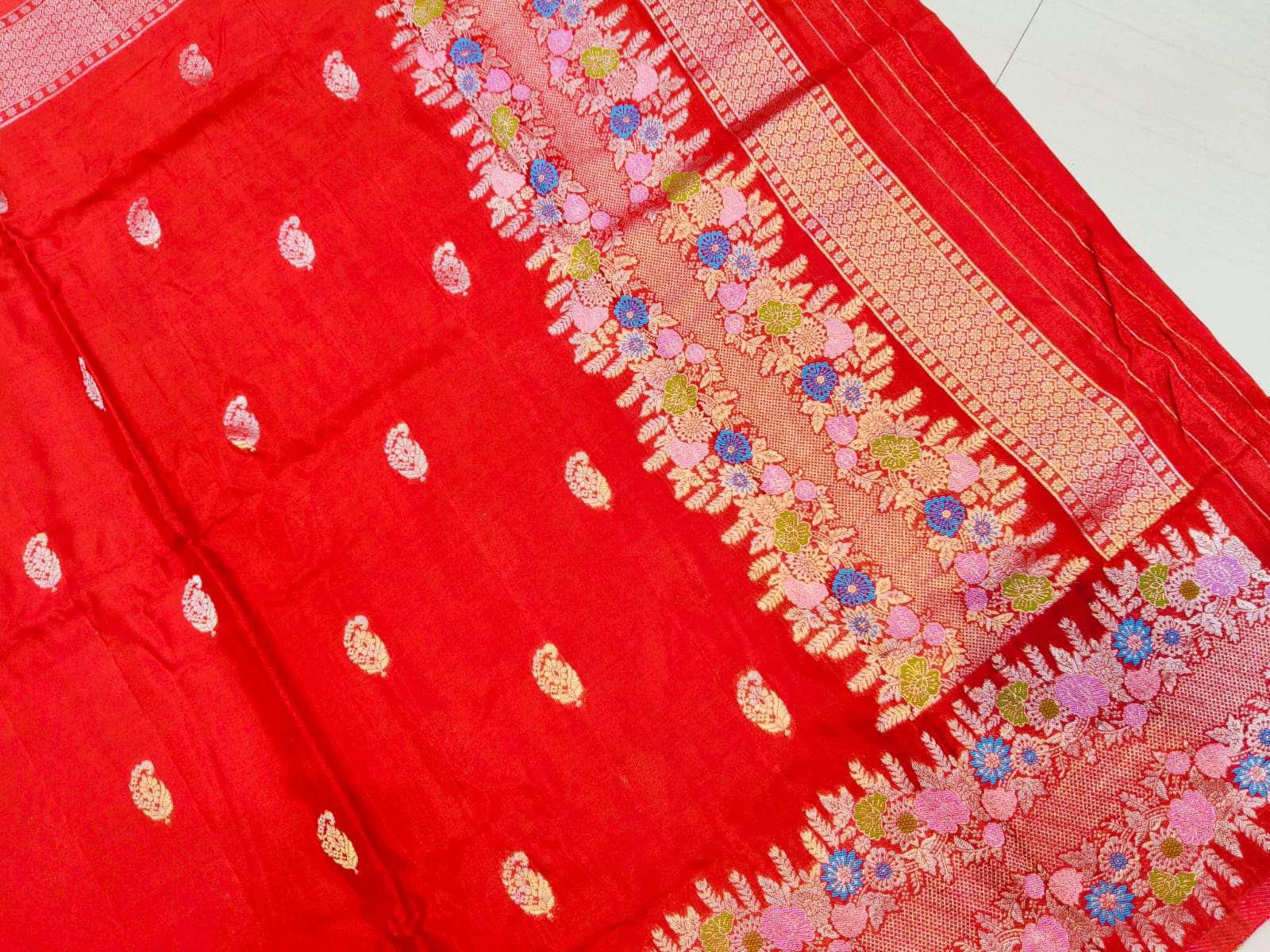 Red and Orange Striped Saree with Embroidered Blouse Piece